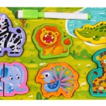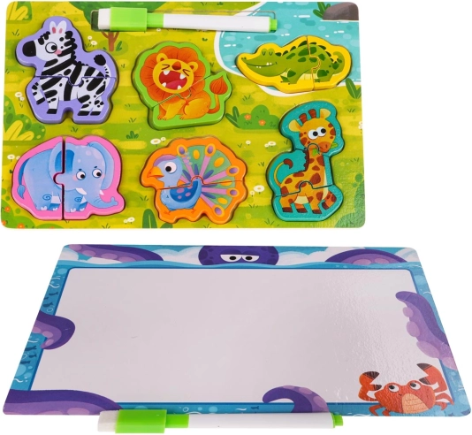 - 2 v 1 – risalna tabla + puzzle z izrezi za živali.