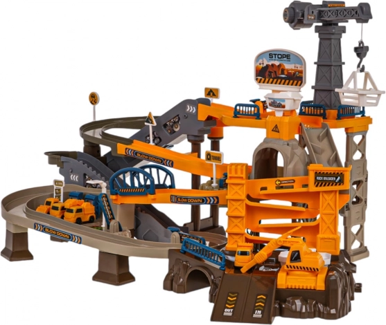 Ta podrobno zasnovan set spremeni otroško sobo v živahno gradbišče. Zahvaljujoč električni trakovi progi se vozila zapeljejo vse do vrha, kjer jih čakajo ukrivljeni spusti, predori in odpirajoče se zapornice. Za zabavo poskrbijo tudi prijetni zvočni učinki, ki poudarijo vzdušje živahne gradnje.
