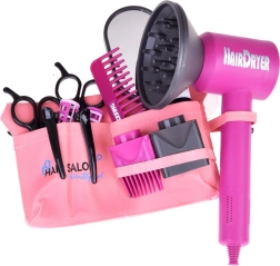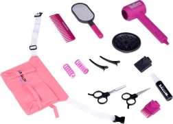 Tekstilni rožnati pas z žepi poskrbi, da so vsi pripomočki pri roki, ter podpira realistično igro frizerskega salona.