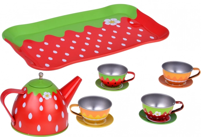 Čajnik, skodelice, podstavki in pladenj iz kovine so lahki, trpežni in odlično prilagojeni otroškim rokam. Jagodni motiv vsaki čajanki doda čarobno vzdušje.