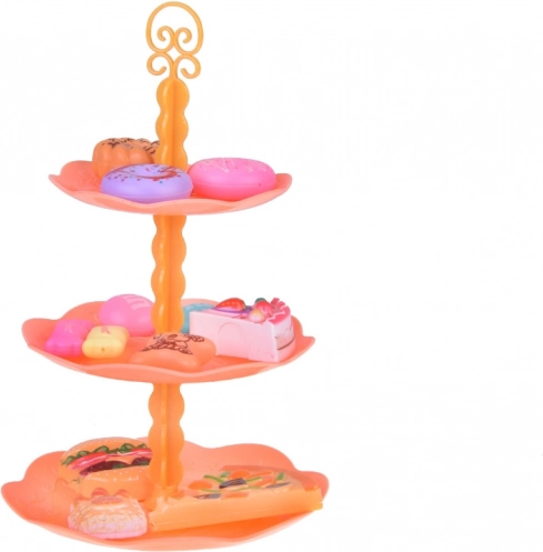 Postrezite igrače dobrote na stabilnih tridelnih podstavkih – tortice, krofe ali pico. Idealno za igro slaščičarne in razvoj domišljije.