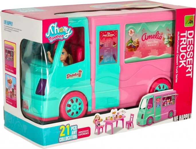 Ta izjemen igralni set združuje čar mobilnega tovornjaka za hrano, ki postreže naravni sladoled, in prostornega avtodoma, ki ponuja dovolj prostora za igro in sprostitev. Otroci lahko enostavno preidejo iz vloge kreativnega sladoledarja v vlogo vodiča potujočega avtodoma, kar zagotavlja večnamensko igro in neskončno zabavo.