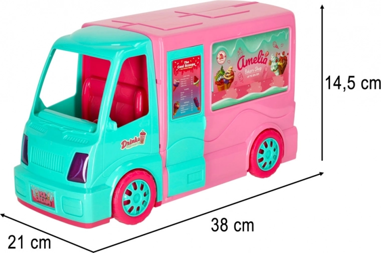 Ta set združuje prednosti igre vlog kot sladoledar in vodnik avtodoma, kar ustvarja prostor za razvoj otrokove domišljije in spretnosti.