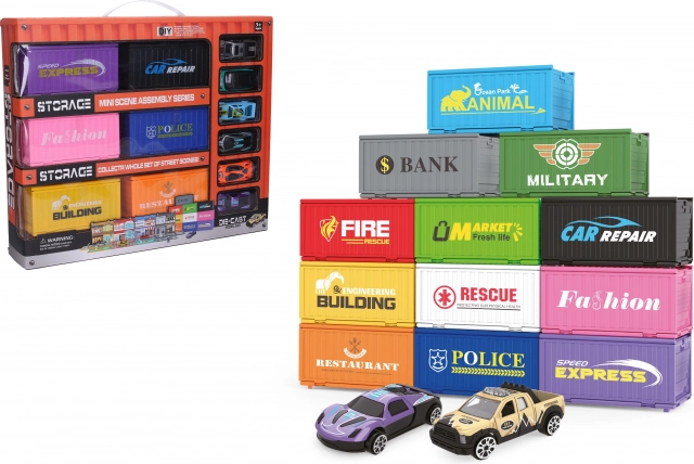 Kontejnersko mesto ponuja igro za otroke s 6 kontejnerji, kjer vsak kontejner skriva avto. Ta komplet spodbuja kreativnost in razvija otroško domišljijo.