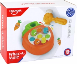 Zabavna interaktivna igrača v obliki korenja prinaša otrokom ure zabave – s pomočjo rumenega kladivca lahko »potolčejo« vesele glavice, ki se znova prikazujejo. Spodbuja fino motoriko, koordinacijo oko‑roka in hiter odziv. Izdelana iz varne plastike, primerna za otroke od 18 mesecev, s certifikatom CE in skladnostjo z EN 71.