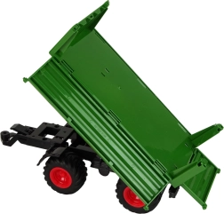 Zelena prikolica z gibljivimi deli in gumijastimi kolesi omogoča enostavno nakladanje in razkladanje tovora – prav kot na pravi kmetiji.