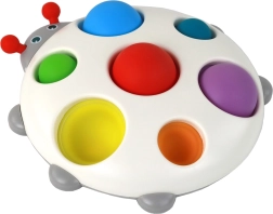 Odkrijte igrivo in pomirjujočo zabavo s silikonsko senzorično tablo v obliki pikapolonice. Zahvaljujoč barvnim mehurčkom, ki jih je mogoče »preklapljati« sem in tja, spodbuja razvoj fine motorike, čutno zaznavanje in učenje barv. Idealno za najmlajše raziskovalce – ponuja tiho igro, koncentracijo in relaksacijo skozi dan.