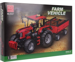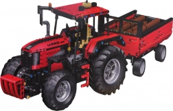 Ta obsežen gradbeni komplet prinaša avtentičen model kmečkega traktorja z odklopljivo prikolico. Zahvaljujoč domiselnim prenosom na strehi lahko zlahka upravljate obračanje sprednjih koles, gibanje sprednje maske in delovanje batov. Realistična razmerja in mehanske podrobnosti bodo razveselila male in velike graditelje.