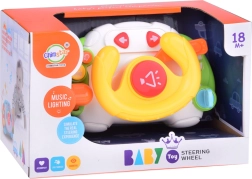 Volan je zasnovan tako, da se zlahka prilega vozičku ali potovalni torbi. Zahvaljujoč intuitivnim gumbom se otroci hitro naučijo upravljanja: rdeči gumb za hupo, rumeni za melodije (3 vrste) in modri za zvoke in glasbo (4 vrste). Med predvajanjem glasbe se sredina volana ritmično osvetli.