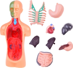 Ta podrobno izdelan anatomski model trupa omogoča nazorno spoznavanje razporeditve človeških organov. Zahvaljujoč odstranljivim delom (pljuča, srce, jetra, želodec, trebušna slinavka, tanko in debelo črevo, rebra) si zlahka osvojite njihovo lego in medsebojne povezave.