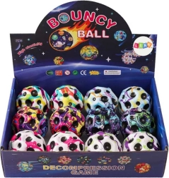 Kozmična svetleča žogica je majhna, a fascinantna igrača za otroke in odrasle. S premerom 7 cm odlično sede v dlan, po odboju se giblje z visoko hitrostjo, njeni barviti vesoljski motivi pa pritegnejo na prvi pogled. Ob udarcu zasveti, zato je zabava zagotovljena tudi v mraku.