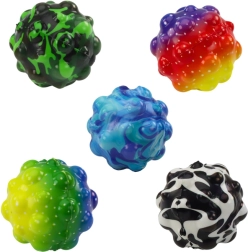Barvasta žogica z izboklinami s premerom 6,5 cm je odlična igrača za otroke in odrasle. Zaradi svoje teksture se odlično drži, primerna je za skakanje, stiskanje in senzorično stimulacijo. Različne barve pritegnejo na prvi pogled in podpirajo razvoj fine motorike ter vidnega zaznavanja. Idealna za na pot, v šolo in domov.