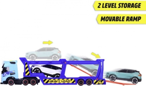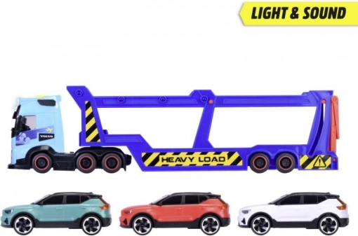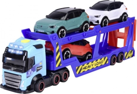 Realistična avtovleka VOLVO FH16 bo razveselila vse male voznike. Ponuja svetlobne in zvočne učinke, prosti tek za gladko vožnjo in prikolico za prevoz avtomobilov. Del pakiranja so 3 avtomobili VOLVO XC40 RECHARGE. Dolžina seta je 40 cm.