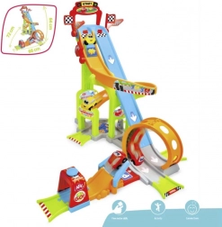 Začnite dirko z bliskovitim izstrelitvenim zagonom in opazujte, kako avtomobilčki poletijo skozi veliki looping. Odlična mera hitrosti in zabave za male dirkače.