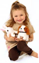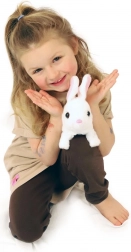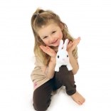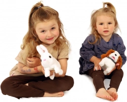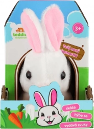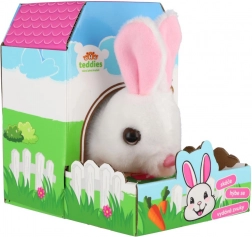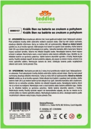 Ljubki zajček BEN znamke Teddies zna skakati, premikati ušesa in oddaja zabavne zvoke. Zahvaljujoč kompaktni velikosti je idealen za otroške ročice, priložena pa je škatlica v obliki hišice, ki služi kot praktična embalaža in igralna kulisa.
