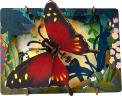 3D lesena sestavljanka metulj razvija domišljijo in nudi zabavo za daljši čas. Vsebuje 27 kosov, ki jih otroci sestavljajo po priloženih navodilih korak za korakom. Zaradi tega, ker je posamezne kose iz vezane plošče mogoče enostavno iztisniti in jih sestavljati brez lepila, lahko otroci sestavljanko večkrat sestavljajo in razstavljajo ter se tako znova in znova zabavajo.