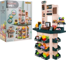 Otroški supermarket je opremljen z blagajno in skenerjem, ki ustvarjata realistične zvoke in svetlobne učinke, kar poveča celotno izkušnjo igre.