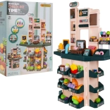 Del seta je tudi tabla za risanje, bogata ponudba imitacij živil ter različni regali in police za shranjevanje vsega dodatnega pribora. Ta igrača podpira kreativnost in družabno igro med otroki.
