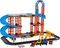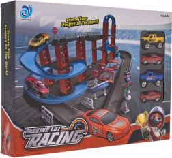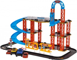 Vsebuje vse potrebno za igro, vključno z avtomobilčki, dirkalno stezo, parkirišče in drugimi dodatki.