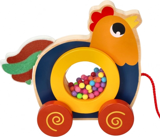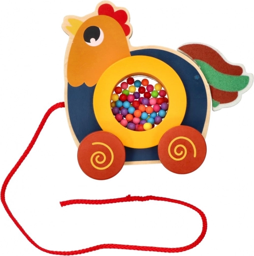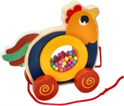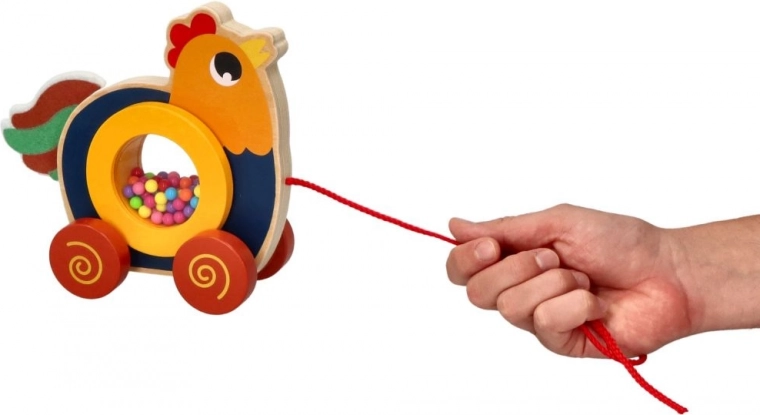 Podarite svojim otrokom veselje do gibanja s to edinstveno leseno vlečno igračo v obliki petelinčka. Igrača ne le pritegne z barvitim dizajnom, temveč tudi izboljšuje motorične spretnosti zahvaljujoč preprostemu mehanizmu vlečenja. Petelinček ima v krožnem delu pisane kroglice, ki ob gibanju oddajajo zvok in tako spodbujajo senzorični razvoj otrok. Vlečna vrvica dolžine 60 cm omogoča enostavno upravljanje.
