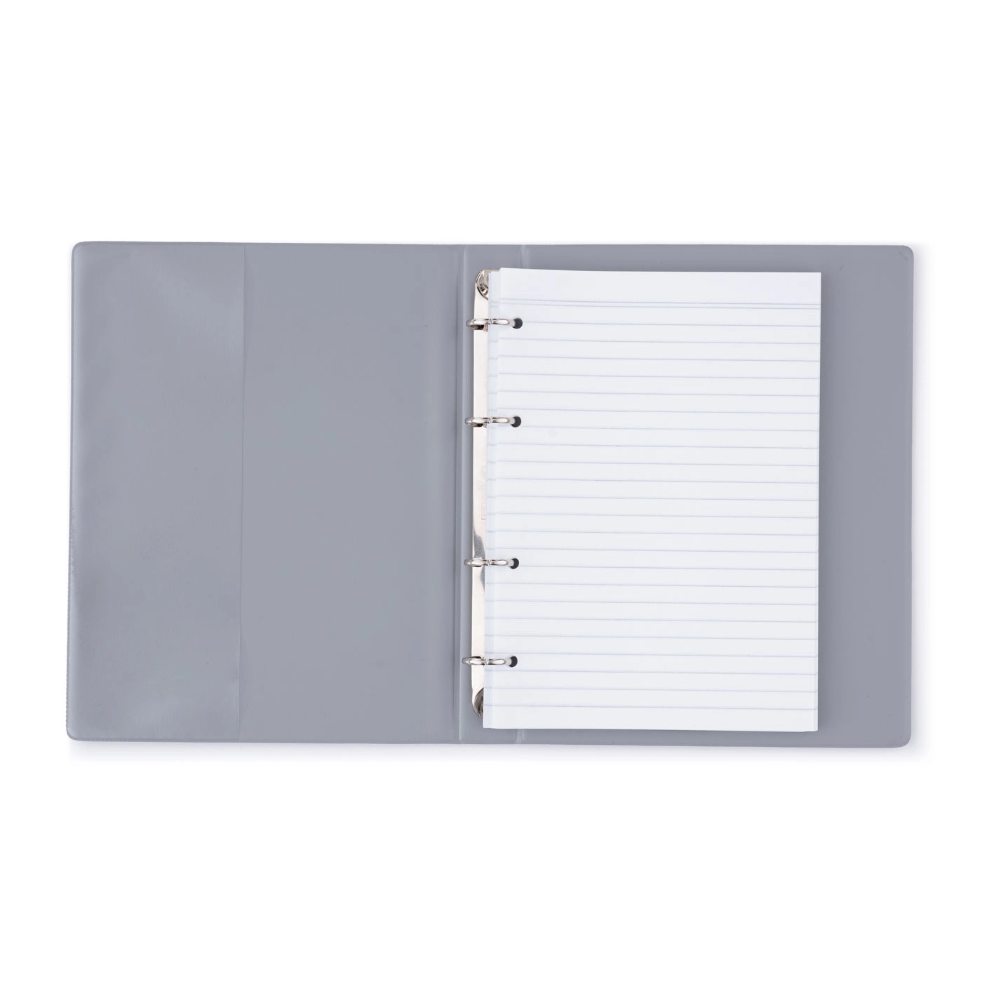 Praktičen in vzdržljiv zvezek A4 Pastelini v sivi izvedbi je odlična izbira za vsakodnevno pisanje in načrtovanje. Čvrste PVC platnice zaščitijo vaše zapiske, medtem ko 4-krožna mehanika omogoča enostavno dodajanje in premikanje listov.