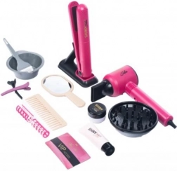 Ta bogat otroški frizerski set ponuja malim stilistkam vse, kar potrebujejo za igro pravih salonov. Zahvaljujoč delujočemu sušilniku na baterije in celotnemu naboru dodatkov lahko otroci posnemajo urejanje las, sušenje, likanje in “barvanje” – varno in zabavno.