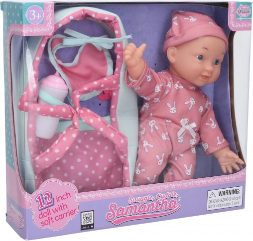 Mehka dojenčica s prenosno torbo je idealna igrača za majhne otroke, ki želijo skrbeti za svoje punčke. S 30 cm je kompaktna in enostavna za prenašanje.