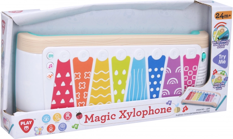 Ta dotiksen ksilofon za najmlajše prebuja ljubezen do glasbe ter razvija fino motoriko in slušno zaznavanje. Zahvaljujoč barvnim tipkam ter svetlobnim in zvočnim učinkom otroci zlahka razumejo povezavo med pritiskom in tonom ter se ob tem neizmerno zabavajo.