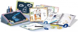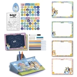Ta šolski risarski komplet v prikupnem nahrbtniku z motivom BLUEY otroke motivira k ustvarjalnemu izražanju. Z ilustrirano brošuro z navodili se male roke zlahka naučijo osnov risanja in sledenja oblikam – neposredno na priročni tabli.