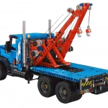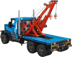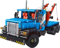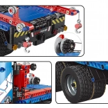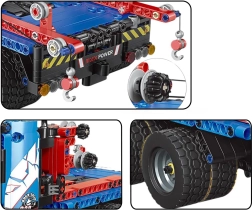 Model poganja akumulator 3,7 V (vključen v paket), medtem ko upravljalnik uporablja baterije 2× AAA 1,5 V (niso priložene). Pogon 4×4 pomaga premagovati ovire, realistična razmerja pa zvesto posnemajo pravi vlečni tovornjak. Jasna slikovna navodila olajšajo gradnjo tudi mlajšim graditeljem.