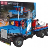 Ta podroben gradbeni komplet tovornjaka prinaša avtentično izvedbo s številnimi gibljivimi deli: odprtljiva havba in vrata kabine, nastavljiva ogledala ter funkcionalen vlečni mehanizem s kljuko in dvižnimi rameni. Zahvaljujoč daljinskemu upravljanju (naprej/nazaj/desno/levo) prek RC upravljalnika ali mobilne aplikacije je vožnja tekoča in zabavna.