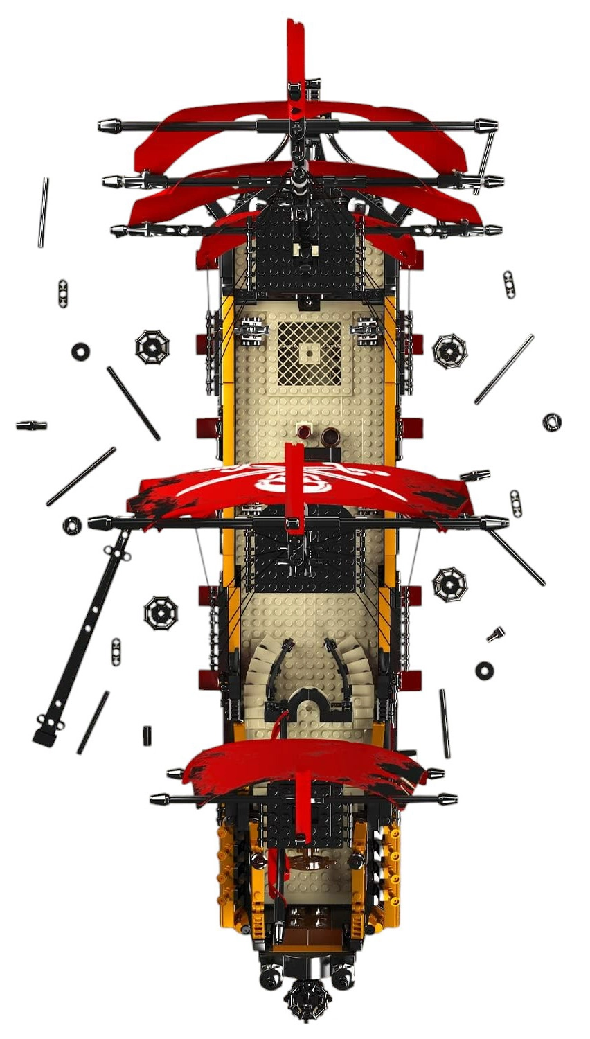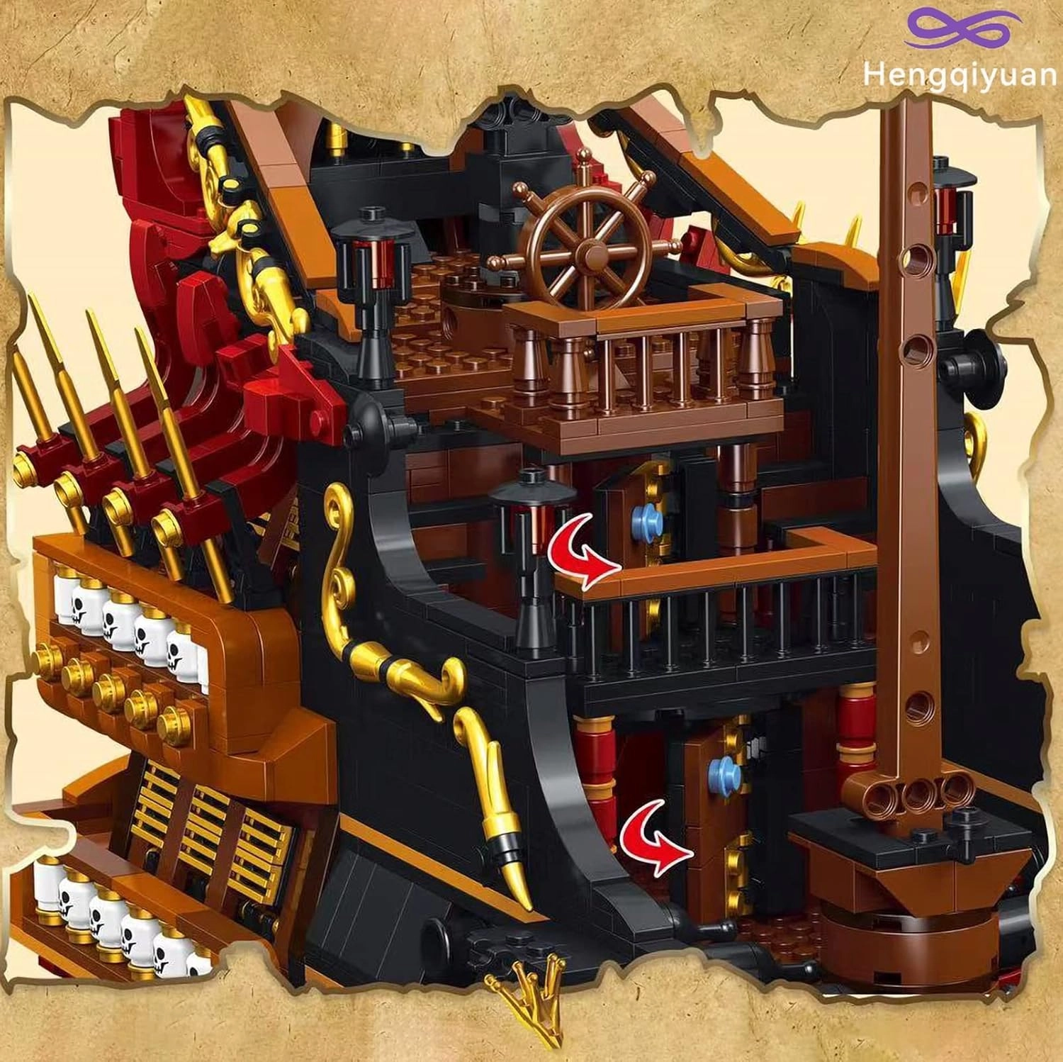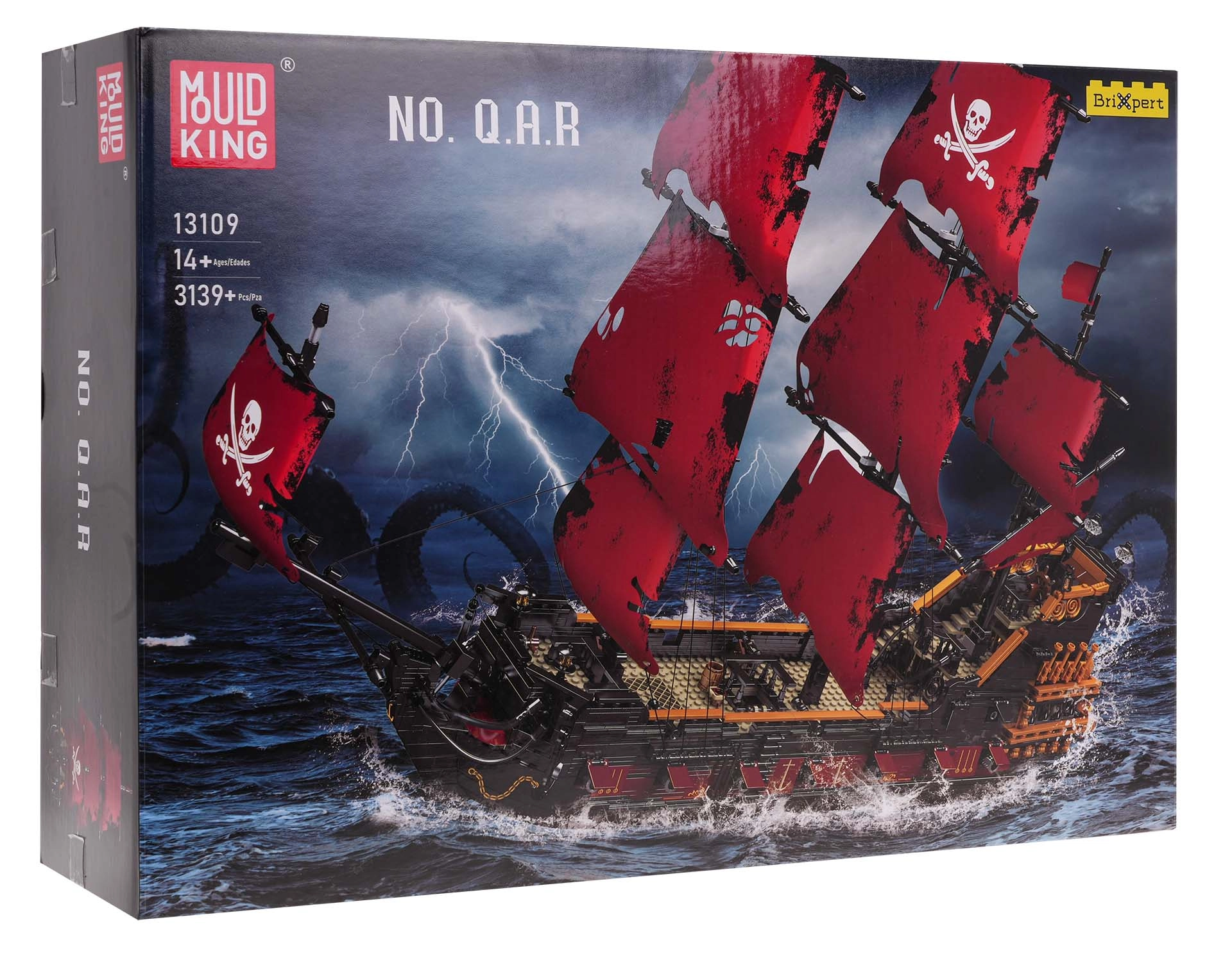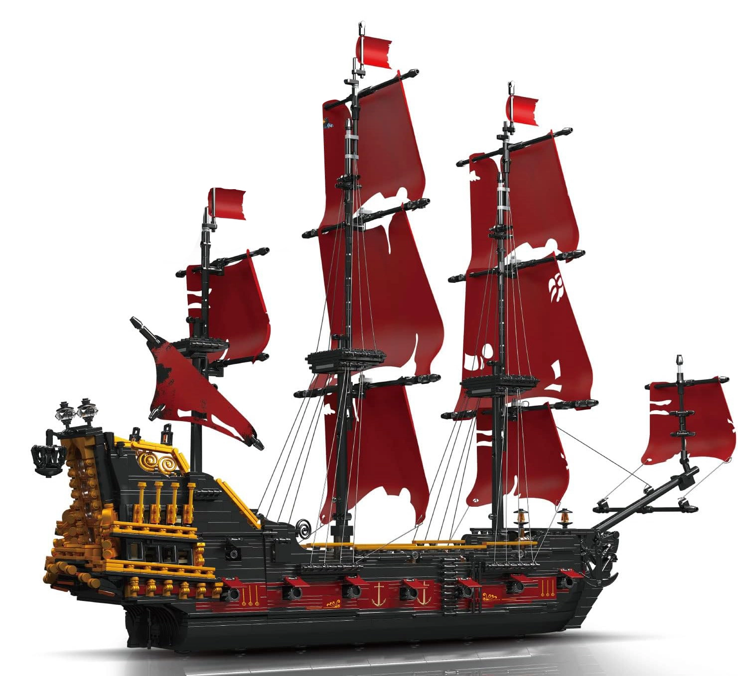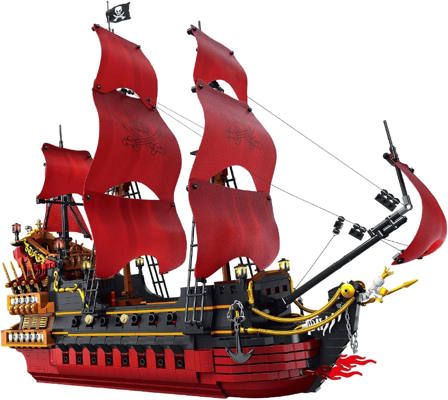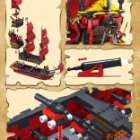 Ta zelo podroben model ima vrhunska rdeča jadra, veliko notranjih in zunanjih podrobnosti na premcu in krmi ter tudi strelne elemente na obeh krovih. Modularni gradniki – trup in kapitanova kabina – se zlahka odstranijo s krova, da raziščete, kaj se skriva v notranjosti. Odpri vrata kapitanove kabine in pridobi dostop do dodatnega igralnega prostora. Set stabilno integrira vse zapletene konstrukcije in bo imel častno mesto v tvoji zbirki in razstavi piratskih ladij.