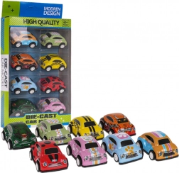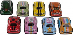Ta pisani komplet 8 mini avtomobilčkov prinaša kombinacijo vzdržljivosti, dizajna in enostavne uporabe. Kovinska karoserija z modernimi motivi in gumijaste pnevmatike zagotavljajo dolgo življenjsko dobo ter odličen oprijem na gladkih površinah. Vzmetni (pull-back) pogon omogoča, da avtomobilčki po kratkem potegu nazaj sami hitro odpeljejo naprej.