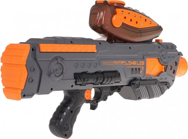 Model je izdelan iz vzdržljive, kakovostne plastike in ponuja udoben oprijem tudi pri daljši igri. Praktično drsno okence pomaga sprostiti zagozden izstrelek. V paketu najdete 20 penastih kroglic, zato lahko začnete igrati takoj po vstavitvi baterij.