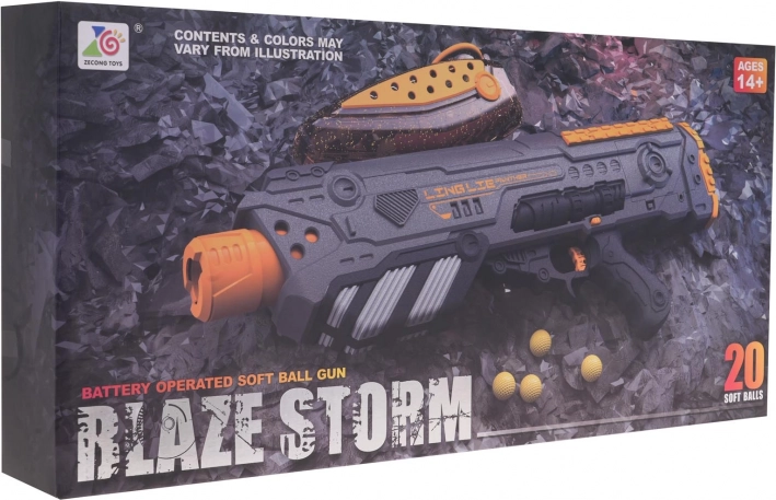 Zabavna in varna akcijska igra za starejše otroke: polavtomatska pištola BLAZE STORM za penaste kroglice z zgornjim nabojnikom. Ponuja hitro streljanje, kakovostno plastično izdelavo in 20 mehkih kroglic v paketu. Primerno za starost 14+, napajanje z 6× AA (ni priloženo).