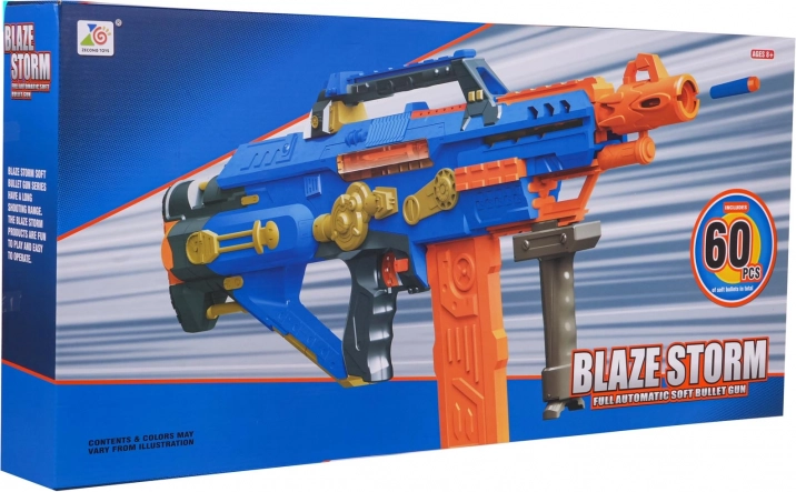 Avtomatski penasti blaster BLAZE STORM je ustvarjen za dinamično družinsko zabavo. Dovolj je, da namerite in pritisnete sprožilec – za ostalo poskrbi zmogljiv mehanizem. Odstranljiv spodnji nabojnik, drsno okence za sprostitev zagozdene puščice in čvrsta konstrukcija iz kakovostne plastike ga naredijo odlično izbiro za otroke od 8 let naprej.