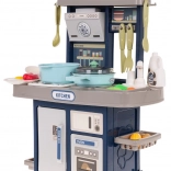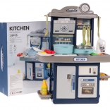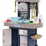 Stilna otroška kuhinjica v modri barvi prinaša svetlobne in zvočne učinke, tekočo vodo iz pipe ter bogat komplet 35 dodatkov za realistično kuhanje. Trdna konstrukcija, interaktivna kuhalna plošča z osvetlitvijo in zvoki pečenja ali kuhanja, odpirajoča se pečica in hladilnik spodbujajo kreativno igro in razvoj domišljije otrok od 3. leta naprej.