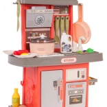 Pipa s kroženjem vode (tlačilka) doda igri avtentičnost, medtem ko bogati dodatki – posoda, pripomočki in živila – omogočijo otrokom pripraviti “meni” po lastni domišljiji. Kuhinjica deluje na 3× AA 1,5 V (niso priložene).