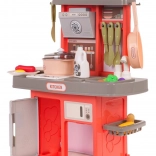 Ta stabilna otroška kuhinjica v živih barvah je izdelana iz kakovostne plastike in ponuja vse, kar otroci potrebujejo za igro kuhanja. Interaktivna kuhalna plošča poskrbi za zvoke pečenja in kuhanja ter osvetlitev, ne manjkata niti odpirajoča se pečica in odpirajoči se hladilnik. Odlična izbira za razvoj kreativnosti, fine motorike in socialnih veščin pri skupni igri.