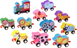 Iščete igračo, ki združuje učenje in zabavo? Ta leseni vlakec z živalcami je idealna rešitev za otroke že od 12 mesecev starosti. Sestavljen je iz lokomotive in desetih vagončkov, vsak okrašen z različnimi živalcami in opremljen z izstopajočimi barvami.