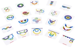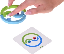 Komplet vsebuje 20 dvostranskih kartic z nalogami različne zahtevnosti. Posamezne kartice so prilagojene za različne starosti in veščine, kar pomaga pri postopnem razvoju otroka. Otrok lahko ustvarja različne vzorce in strukture, kar še posebej spodbuja kreativnost in samostojno mišljenje.
