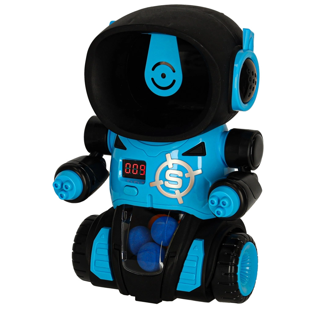 Zabavna strelska igra s pametnim robotom za otroke od 3 let. Cilj je zadevati tarčo na robotovi glavi s penastimi kroglicami. Robot ima LCD števec zadetkov ter svetlobne in zvočne učinke, ki spodbujajo k novim poskusom. V paketu so 2 pištoli in 24 mehkih penastih kroglic za varno in dinamično igro doma in na prostem.