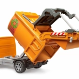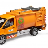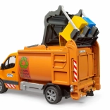 Ta mestni smetarski tovornjak BRUDER zvesto posnema pravi MERCEDES-BENZ Sprinter. Zaradi kompaktnih mer se “prebije” povsod, kjer velika smetarska vozila ne morejo. Pri praznjenju smetnjakov se strešna loputa samodejno odpre in se po spustu znova zapre. Zadnja prekucna vrata omogočajo preprosto raztovarjanje tovora.