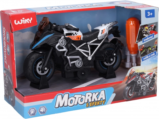 Ta bel vijačni motor dolžine 20 cm je odlična igrača za razvoj fine motorike in tehničnega razmišljanja. Otroci ga lahko sami razstavijo in znova sestavijo s priloženima izvijačem in ključem. S pritiskom na zadnji del motorja se sprožijo svetlobni in zvočni učinki, ki še dodatno popestrijo igro.