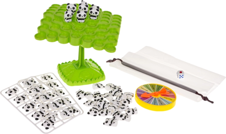 Arkadna igra Panda za otroke od 3 let. Igra je sestavljena iz stojala, droga, igralne plošče, figur pand, kocke in kolesc z nalogami. Naloga igralcev je na igralno ploščo postaviti ali z nje odstraniti čim več pand, kot določi met s kocko, ter izpolnjevati naloge, navedene na koleščku. Igralec, ki prvi povzroči porušitev konstrukcije, izgubi. Igra izboljšuje spomin, uči logičnega razmišljanja in potrpežljivosti. .. Funkcije igre: . - arkadna igra, .- namenjena otrokom od 3 let, .- uči logičnega razmišljanja, .- uči potrpežljivosti, .- uči štetja, .- izboljšuje koordinacijo roka–oko, .- odlična ideja za skupno preživljanje časa v družini. . |