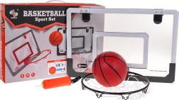 Komplet vsebuje vse, kar potrebujete za košarko: tablo, obroč, mrežico, žogo in tlačilko.