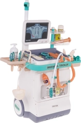 Ta čarobni zdravniški voziček je lahek in enostavno vodljiv zaradi velikih koles in praktičnega ročaja. Vaš otrok lahko postane zdravnik, oftalmolog, kardiolog ali zobozdravnik. Set vključuje panel z monitorjem, ki posnema zvoke srčnega utripa in alarma, ter omogoča menjavo slik EKG in RTG. Primerno za otroke od 3 let.