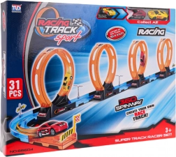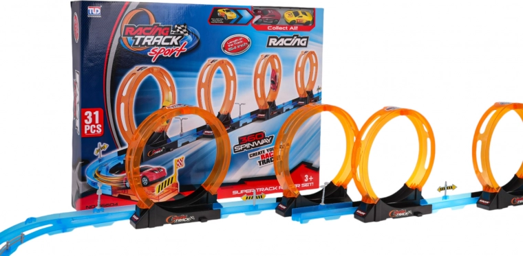 Predstavljamo dirkalno stezo, ki prinaša ure zabave in adrenalina za otroke od treh let naprej. Ta preprosto sestavljiv set vključuje 31 delov, ki tvorijo očarljivo stezo s štirimi velikimi 360-stopinjskimi zankami. Izdelano iz visokokakovostne plastike in zasnovano v veselih barvah, da pritegne vsakega otroka.
