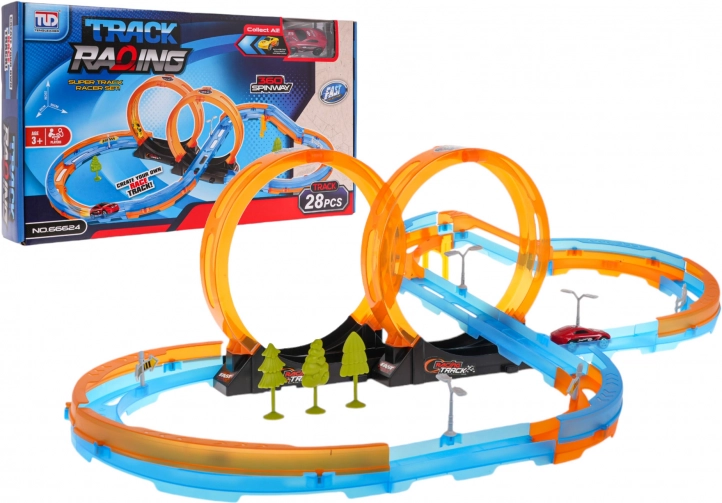Dirkalna Proga Hitra Zanka je idealna igrača za male dirkače. Ta trpežna plastična proga je sestavljena iz 28 delov, ki jih je enostavno sestaviti, in ponuja izjemno zabavo z dvema zankama ter dirkalnim avtomobilčkom z vzvratnim pogonom.