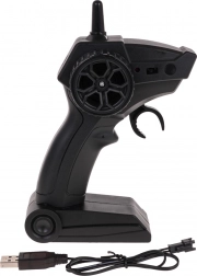 Brezžično 2,4GHz radijsko upravljanje nudi tekoče krmiljenje brez motenj – vožnja naprej/nazaj, zavijanje z možnostjo trima in natančen odziv na ukaze. Napajanje iz akumulatorja 3,7 V 1200 mAh (v paketu) podaljša čas igre, polnjenje omogoča priložen USB kabel.